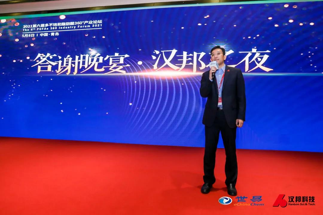 多不飽和脂肪酸360°產(chǎn)業(yè)論壇漢邦之夜晚宴由世易科技健康產(chǎn)業(yè)事業(yè)部負(fù)責(zé)人王艷紅女士與江蘇漢邦科技劉大偉先生共同主持!