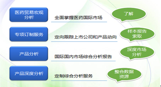 中國醫(yī)藥產(chǎn)品進(jìn)出口數(shù)據(jù)報(bào)告通過對西藥、醫(yī)療器械、中藥品種進(jìn)出口情況進(jìn)行完整、及時(shí)、準(zhǔn)確、系統(tǒng)的跟蹤,通過分析國別市場、企業(yè)、產(chǎn)品、價(jià)格、進(jìn)出口量值,實(shí)現(xiàn)對進(jìn)出口品種、市場的全面掌控,為政府、投資機(jī)構(gòu)、藥企提供最佳的醫(yī)藥產(chǎn)品國際化解決方案。