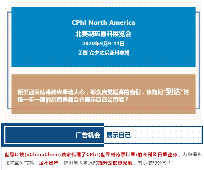 展會延期丨2020 CPhI 北美制藥原料展覽會“跨國參展”機(jī)會來襲!
