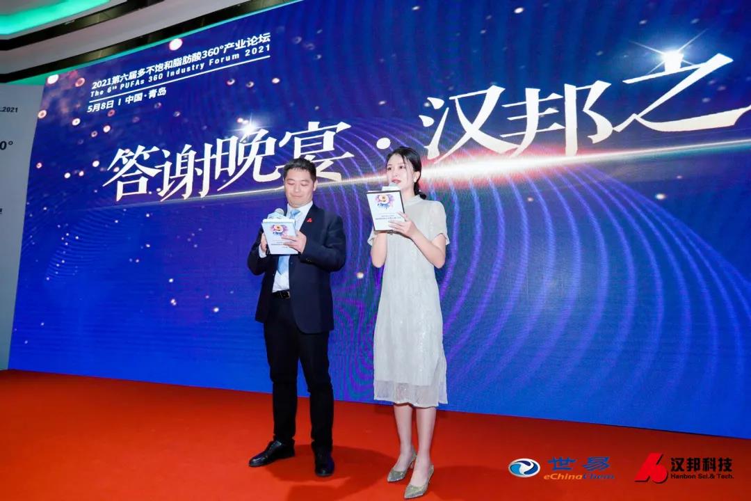 多不飽和脂肪酸360°產(chǎn)業(yè)論壇漢邦之夜晚宴由世易科技健康產(chǎn)業(yè)事業(yè)部負(fù)責(zé)人王艷紅女士與江蘇漢邦科技劉大偉先生共同主持!